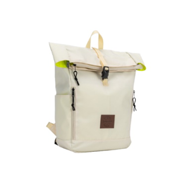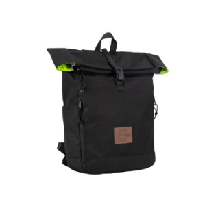 The top can be rolled down for adjustable height and easy access to the main compartment.